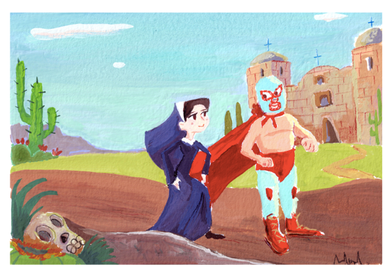 Abril Aello - "Nacho and Sister Encarnación" Original Art | Power Slam!: Pro Wrestling Show